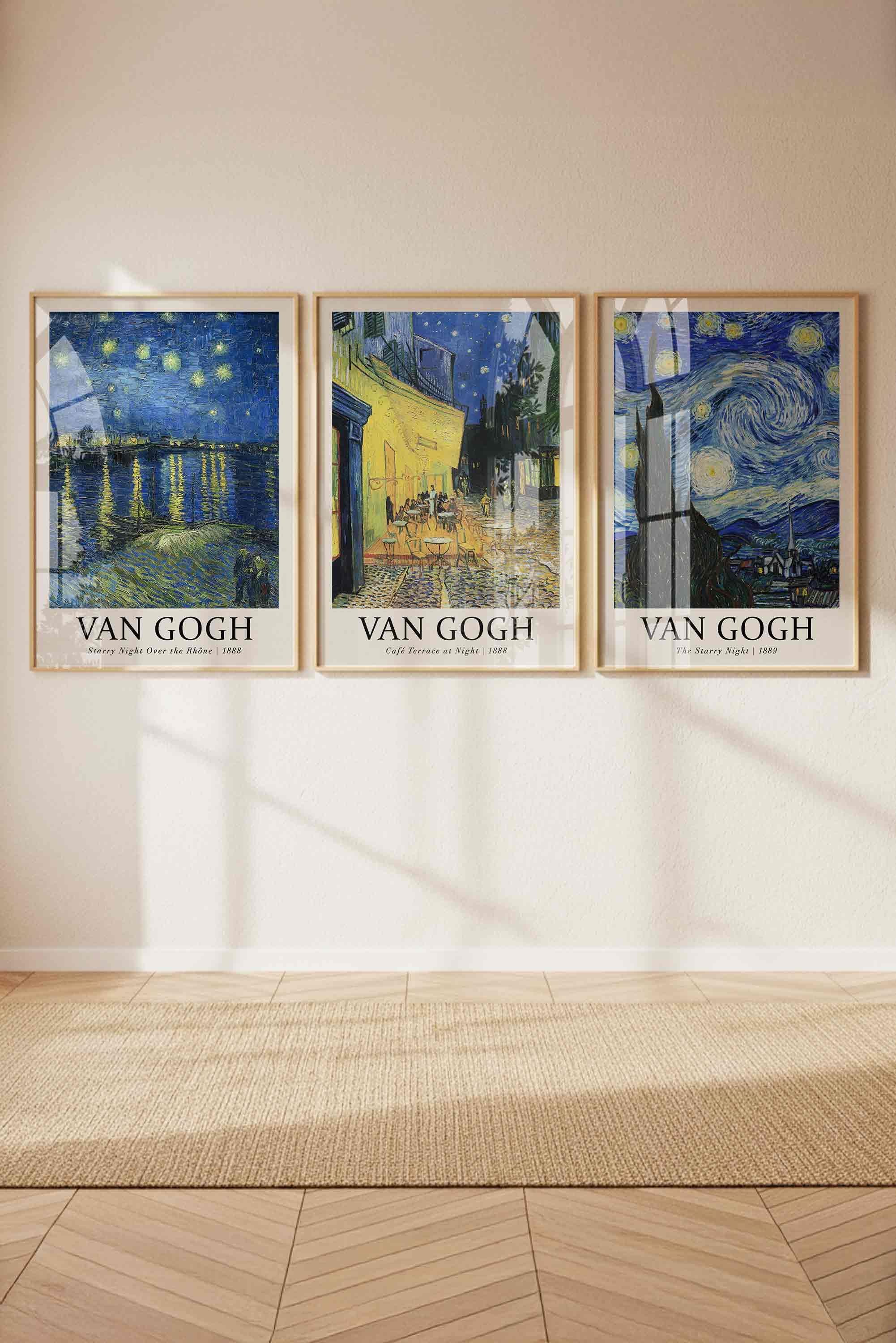 Van Gogh'un Yıldızlı Geceleri Duvarlarınızda: 3'lü Premium Tablo Seti