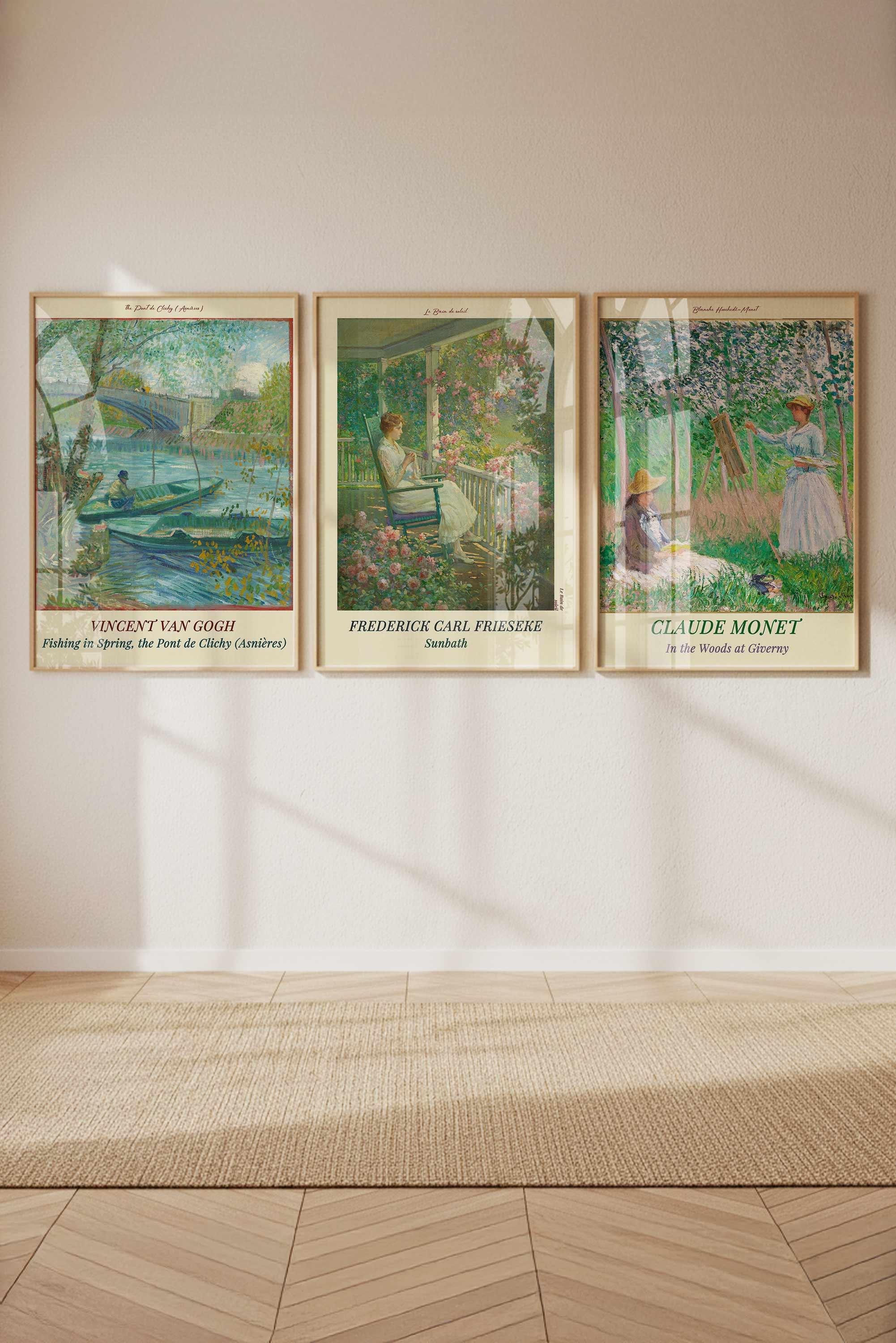 Empresyonizm ve Post-Empresyonizm'in en zarif anlarını evinize taşıyın. Bu özel koleksiyon, üç büyük ustanın fırçasından güneşin, doğanın ve huzurlu anların güzelliğini kutluyor. Işığın yaprakların arasından süzüldüğü, renklerin doğayla dans ettiği bu üç eserle, duvarlarınızda zamansız bir bahar öğleden sonrasının sakinliğini hissedin.