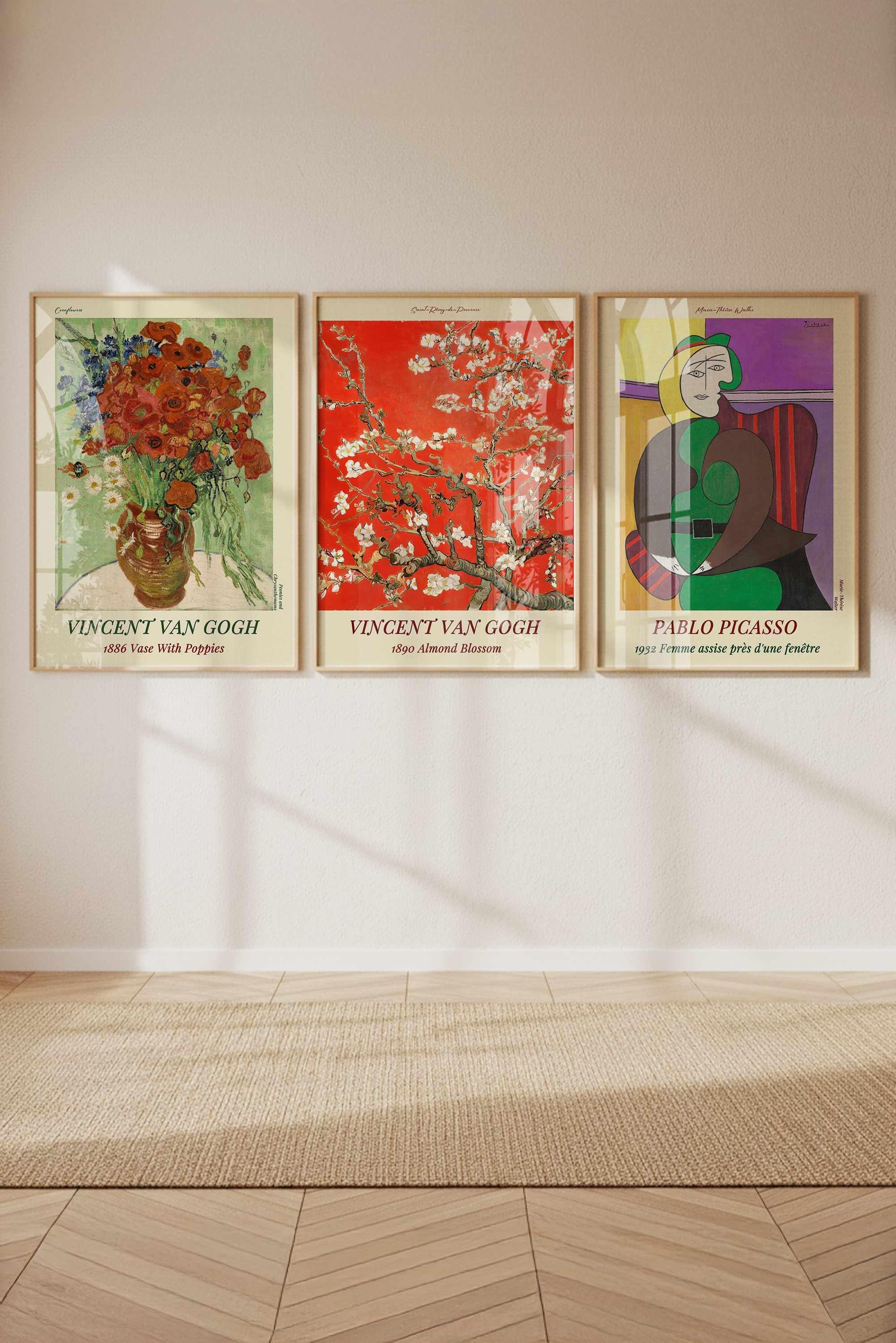 Van Gogh ve Picasso 3'lü Çerçeveli Tablo Seti Çerçeveli Renk Seçenekli